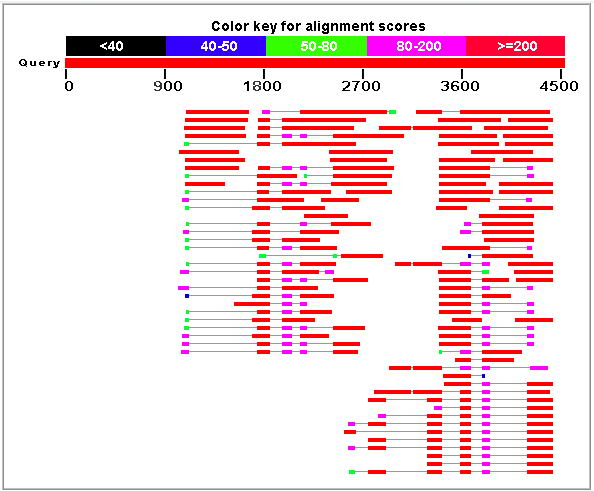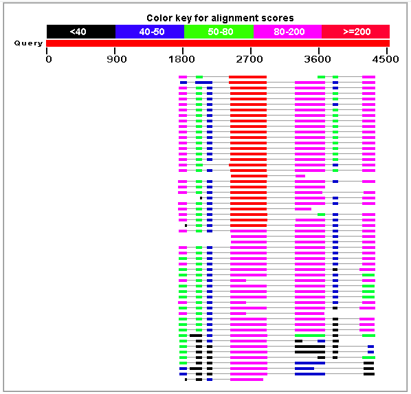Figure 5. Best HSPs representing proteins homologues similar to the genomic sequence HS307871 obtained using blastx